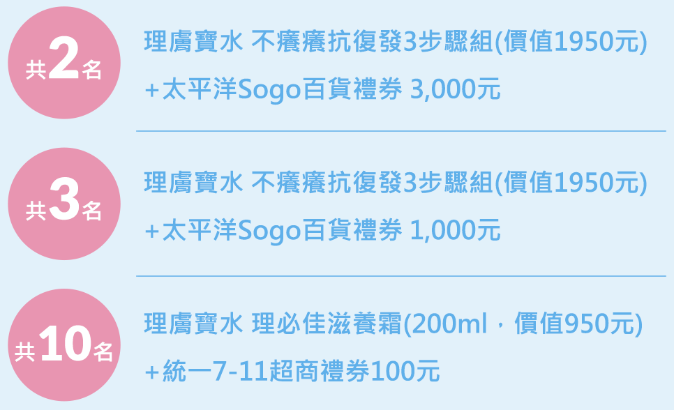 | 理膚寶水 不癢癢抗復發3步驟組+太平洋Sogo百貨禮券 1,000元 共3名 | |