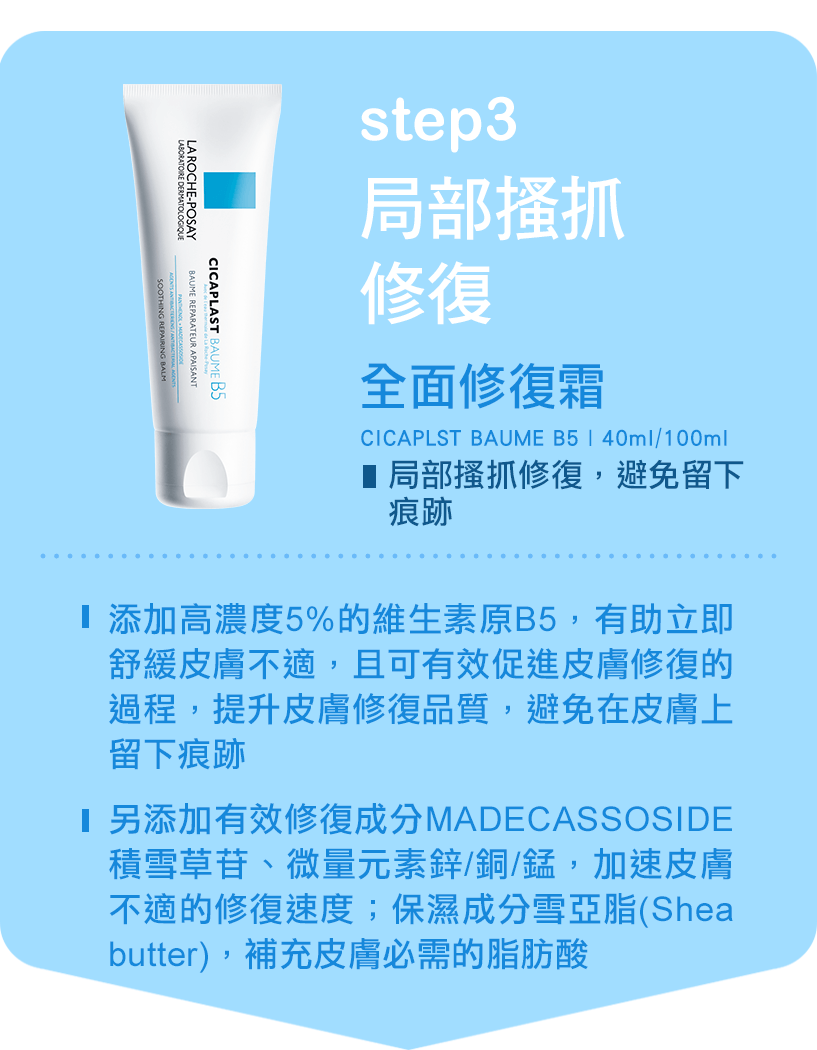 半夜異癢發作的時候,女兒常常抓破皮無法入睡。B5不黏膩又好吸收,擦完再用按摩的方式塗抹AP加強保濕,手肘膝蓋搔抓紅癢的地方很快就好了!