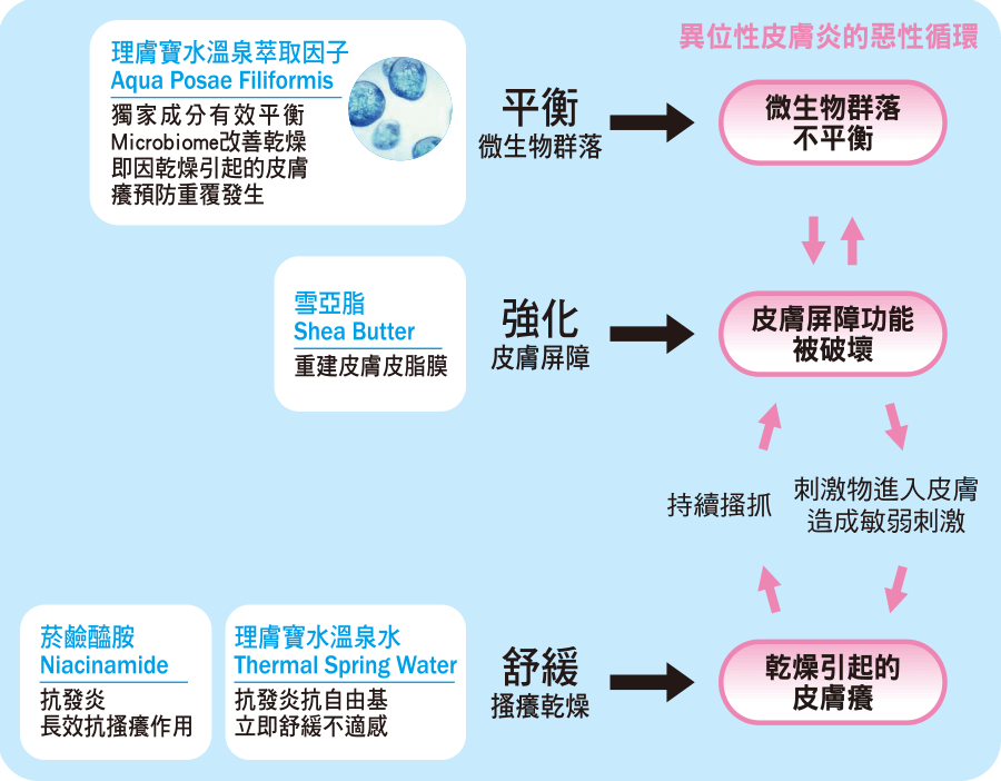 你好~因為孩子只要到了晚上要睡覺前都會習慣抓抓癢才能入睡~也用了溫水不用皂的方式洗完擦無香精香料的乳液!很高興接觸到這項異位滋養霜能改善ㄧ些皮膚抓癢的問題~謝謝